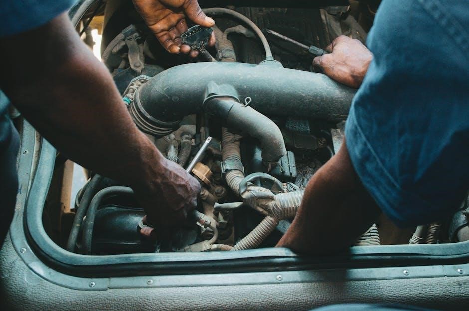 During an engine rebuild, piston and ring replacement is crucial for restoring compression and power. Carefully inspect the piston for wear or damage before removal. New rings must be properly gapped to the cylinder bore, ensuring a tight seal. Proper installation techniques, utilizing a ring compressor, are essential to avoid damage during insertion. Always follow the repair manual’s torque specifications for connecting rod bolts to prevent failure.
