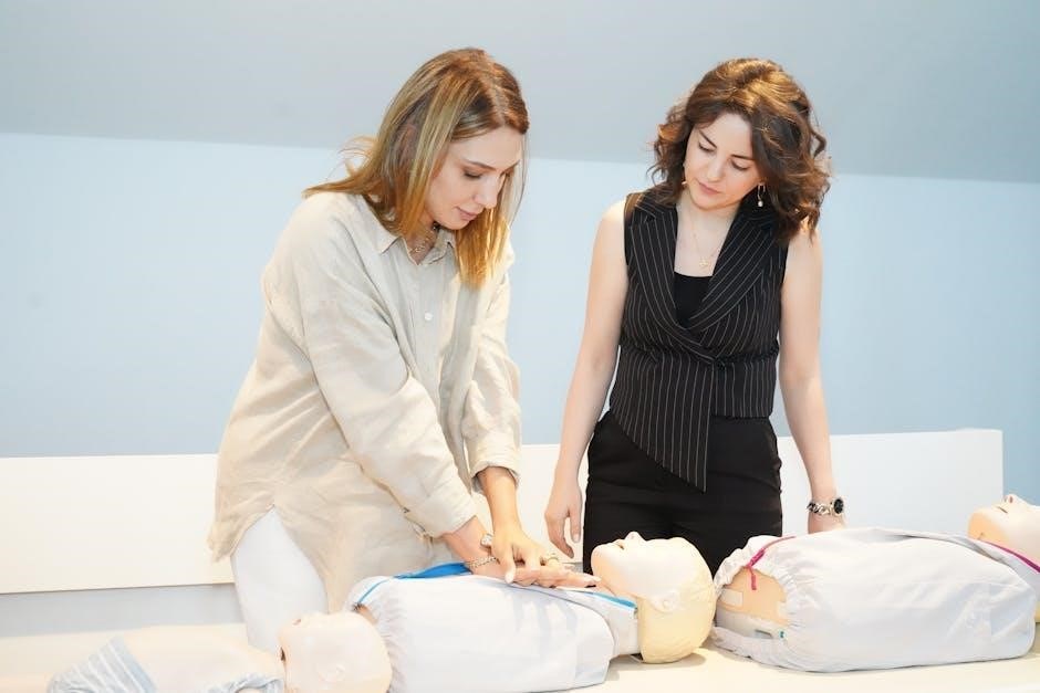 The 8th Edition manual is enriched with detailed visual aids, including diagrams, flowcharts, and step-by-step illustrations, to simplify complex first aid and CPR techniques. Real-life scenarios and case studies provide practical context, helping learners apply theoretical knowledge effectively. High-quality images and infographics enhance understanding of critical procedures, such as AED operation and wound management. These visual elements, combined with clear instructions, make the manual an engaging and effective training resource. Practical examples also include hands-on exercises and assessment drills, ensuring learners can master skills through active participation. This integrated approach fosters a deeper comprehension of emergency care principles, preparing individuals for real-world applications.